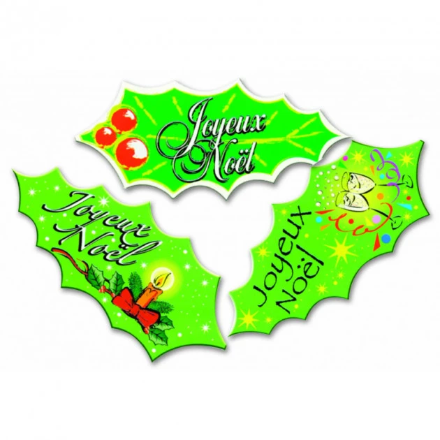 Vendu par lot de 24 pièces de 3 motifs différents. Vous pourrez déposez ces décors d’azyme sur vos desserts pour les décorer de la traditionnelle feuille de houx de Noël.