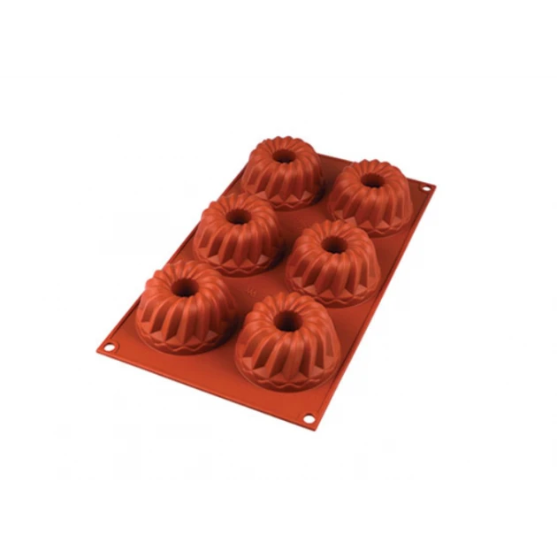 Avec sa forme bien particulière il n’est pas difficile de reconnaître un Kouglof dans une vitrine. Que ce soit dans sa forme traditionnelle de grosse brioche ou en format miniature, lancez-vous dans la réalisation maison de cette viennoiserie. Avec le moule 6 kouglofs en silicone vous êtes parfaitement équipés pour réaliser des petites brioches individuelles qui se démouleront rapidement et facilement. Ce moule silicone, de qualité professionnelle, est composé à 100% de silicone ce qui permet une bonne diffusion de la chaleur lors de la cuisson ainsi qu’un démoulage sans difficulté et cela sans ajout de matière grasse. Issu de la gamme silicon flex, ce moule Silikomart support de grands écarts de températures, ce qui vous permet de la placer dans un four, un micro-onde, un réfrigérateur ou un congélateur.