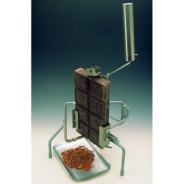 La Râpe à Chocolat Choco-Râpe permet un travail propre et hygiénique par actionnement d’un levier sans manipulation du chocolat.