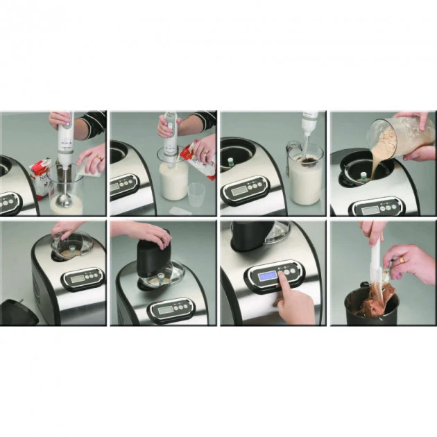 La sorbetière possède une cuve de 1.4 L et une minuterie de 60 minutes.Â