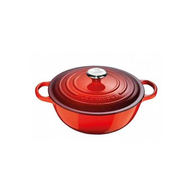 La marmite Le Creuset est composĂ©e de fonte, un matĂ©riel rĂ©putĂ© pour ses propriĂ©tĂ©s anti-adhĂ©sives et conductrices de chaleur. Grâce Ă la fonte, vos aliments seront cuits de façon uniforme. De plus, la marmite Le Creuset possède un couvercle qui parfait l’hydratation des aliments. A son sommet, on retrouve un bouton en acier inoxydable rĂ©sistant aux fortes chaleurs ! Afin de faciliter le dĂ©placement de votre marmite en fonte, Le Creuset l’a munie de deux larges poignĂ©es ergonomiques. Ces poignĂ©es permettent de soulever la marmite en fonte au lieu de la faire glisser sur les plaques de cuisson – une façon d’Ă©viter toutes rayures sur vos plaques de cuisson, surtout si ces dernières sont en verre.