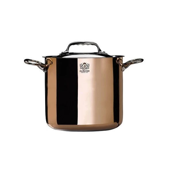 La marmite de la collection Prima Matera est faite de 90% de cuivre et de 10% d’inox. Le cuivre est la matiĂšre prĂ©fĂ©rĂ©e des Grands Chefs de cuisine, car il rĂ©pand parfaitement la chaleur sur le fond et les parois. Ainsi, vos plats cuisent uniformĂ©ment.