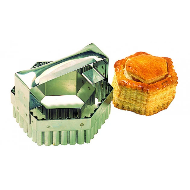 Ce découpoir Hexagonal double permet la découpe en une seule opération de croustades à garnir.