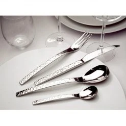 - Dimensions : Fourchette table : 21.6 cm ; Cuillère table : 21.6 cm ; Cuillère café : 14.4 cm ; Couteau table : 22.5 cm
