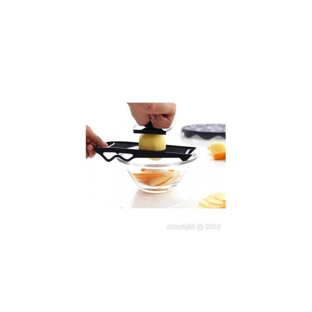 Ses pieds sont adaptĂ©s pour permettre de fixer la mandoline au dessus d’un bol, d’une assiette ou d’un plat. Enfin, cette mandoline ultra compacte pourra se ranger n’importe oĂą, sans encombrer la cuisine ! (Son poussoir se clipse sur la mandoline pour Ă©viter de le perdre)