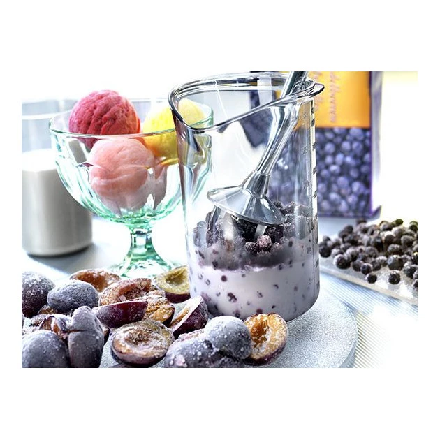 Soupe, smoothie, glace, mousses : rĂ©alisez des prĂ©parations dĂ©licieuses et variĂ©es grâce au Mixeur Plongeant Bamix. Ce dernier est fourni avec de nombreux accessoires afin que vous puissiez laisser libre cours Ă votre imagination. Le mixeur plongeant M160 Deluxe Bamix s’accompagne d’un couteau Ă©toile, d’un disque mĂ©langeur, d’un disque fouet, d’un gobelet et d’un moulin. Le support mural ou sur pied vous permettra de conserver le mixeur plongeant Bamix Ă portĂ©e de main et de gagner en espace de rangement.Â