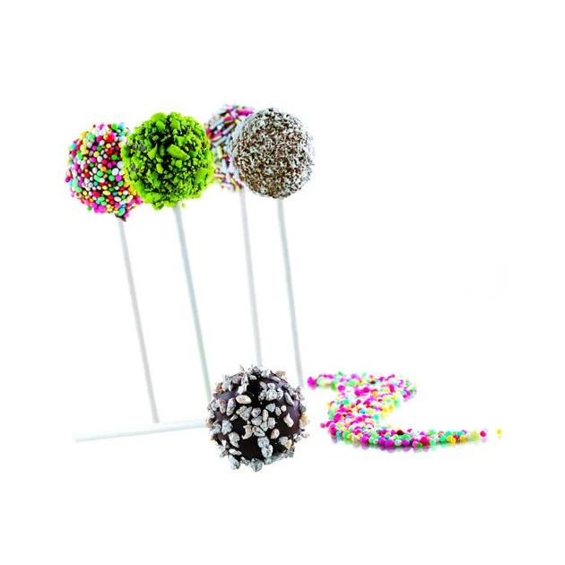 Réalisez vos sucettes faites maison avec le Moule 12 Pop Cake Silicone Silikomart ! Au chocolat, aux fruits, à la crème au beurre, avec un glaçage royal et décorées de billes colorés, de perles de sucre, d’éclats de pralins ou de pâte à sucre… Tout est possible, alors faîtes vous plaisir. Ce kit est complet et esy fourni avec 2 moules de 6 empreintes pour former vos boules, de 36 bâtonnets pour sucettes et de 12 supports bâtonnets. Ce moule en silicone est facile d’utilisation, il passe au frigo comme au congélateur, et la partie supérieure est entièrement transparente ce qui vous permet d’avoir une visibilité totale sur votre produit.