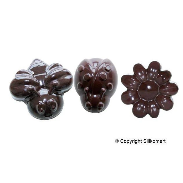 Sur le thème du printemps, ce moule à chocolat silicone vous permet de réaliser les petits animaux et insectes typiques de la période estivale et du retour du beau temps. Avec un peu de colorant alimentaire liposoluble vous pourrez très facilement rendre à vos animaux en chocolat leurs couleurs. Les coccinelles en chocolat se teintent de rouge, les abeilles tout comme les tournesols se parent de chocolat jaune , de quoi rendre vos chocolats plus vrais que nature.