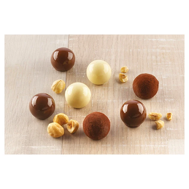 Réalisez des Truffes au Chocolat en toute simplicité grâce à ce Moule Silicone Spécial Chocolat. Comportant 15 empreintes, vous obtiendrez des sphères en chocolat de 2,7 cm de diamètre et d’une hauteur de 2,4 cm.