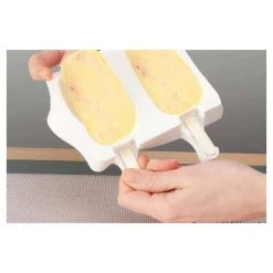 Avec les 2 Moules à Glace Silicone, réalisez jusqu’à 4 Esquimaux en toute simplicité. Le Silicone 100% Platinium vous offrira un démoulage parfait et rapide, laissant apparaître des Esquimaux dignes de professionnels. Pour cela, remplissez les empreintes avec 90 ml de crème glacée, introduisez un bâtonnet dans chaque fente, et replacez le tout au congélateur !