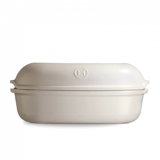 Les dimensions de ce moule vous permettront de réaliser des pavés de 2 kg, à la croûte croquante et à la mie moelleuse. La céramique conductrice de chaleur offrira une cuisson homogène et le couvercle en forme de dôme permettra de conserver un taux d’humidité toujours suffisant.