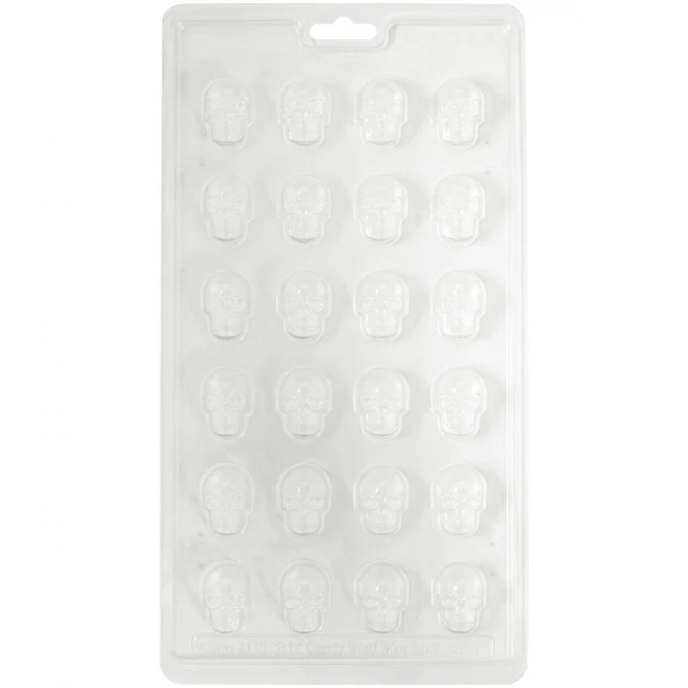 RĂ©alisez des confiseries affreusement gourmandes Ă l’aide du Moule Ă Chocolat TĂȘte de Mort ! Ce dernier dispose de 24 petites empreintes. Pour l’utiliser, il n’y a rien de plus simple : faites fondre au micro-ondes des pistoles de chocolat colorĂ©es, puis versez-les dans une poche Ă douille. Vous pouvez ensuite remplir les empreintes du Moule Chocolat TĂȘte de Mort. Un tour au frigo et les chocolats sont prĂȘts Ă ĂȘtre dĂ©vorĂ©s ou Ă orner un gĂąteau ou un cupcake.Â