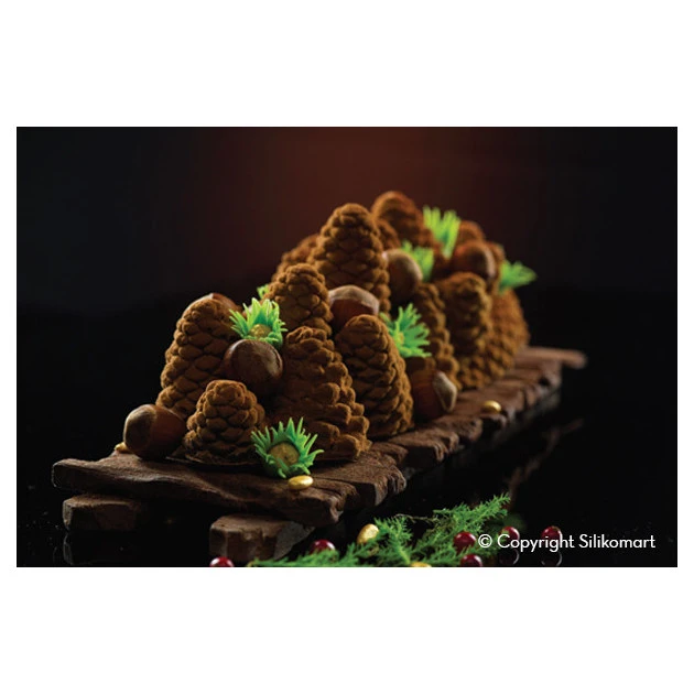 Le support plastique fourni avec ce moule en silicone vous permettra de travailler en toute stabilité. En portions individuelles ou réunies dans un dessert à partager tout simplement intitulé « cueillette en provenance de la forêt » vos pommes de pin gourmandes feront sensation auprès de vos invités.