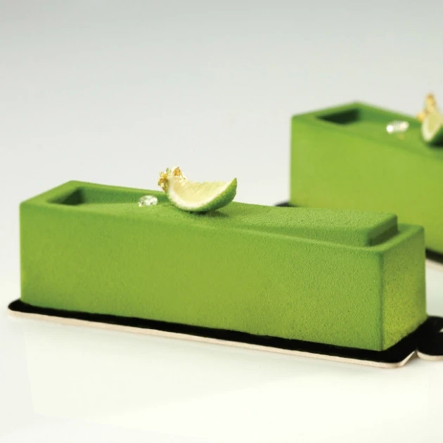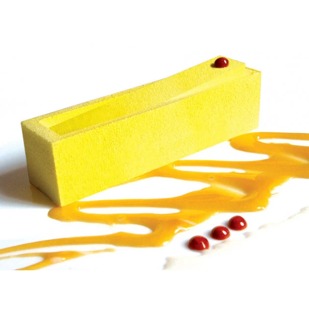 Pour une création raffinée, utilisez le Moule silicone 20 Bandes Inclinées Pavoflex. Son design sobre et élégant habillera vitrines et assiettes.