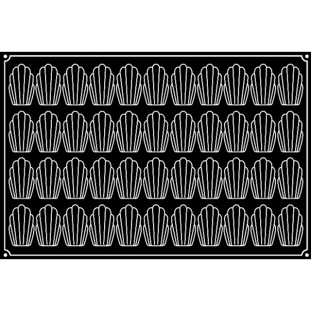 Ce moule en silicone souple Pavoflex est destiné à  une utilisation professionnelle et vous assurera 44 madeleines uniformes par fournée.