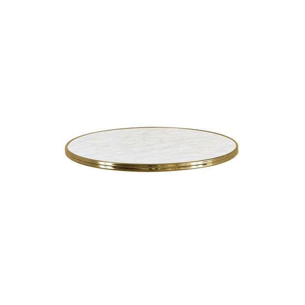Plateau de Table Ø60 cm Marbre Blanc Cerclage Laiton Cerclé Topalit