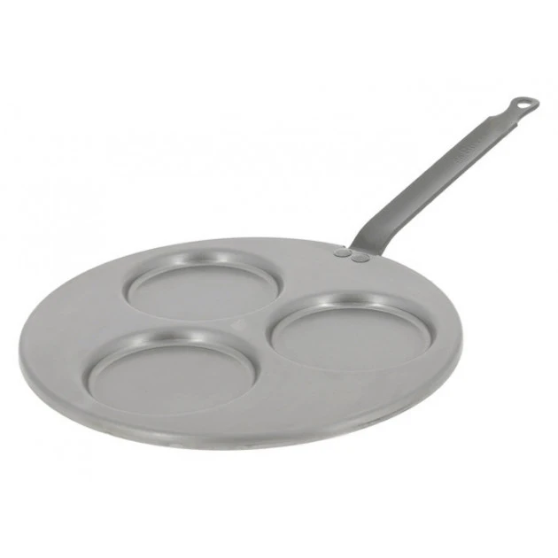 Que ce soit à l’heure du brunch ou du petit déjeuner cette poêle de Buyer vous permet la cuisson simultanée de 3 blinis, pancakes ou beignets. Un gain de temps précieux, les 3 pancakes cuisent en même temps et ce de manière homogène, de quoi régaler les gourmands en un rien de temps. La poêle pancakes de Buyer (poêle tri-blinis) a la particularité de posséder 3 empreintes de 10 cm de diamètre, ce faible diamètre permet à votre pâte à pancake de s’étaler sur la juste surface qu’il faut pour obtenir des pancakes ou des blinis épais et parfaitement dorés.