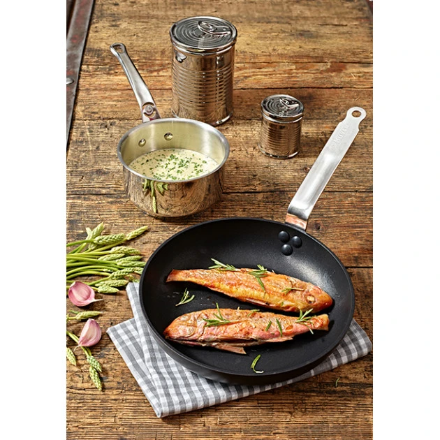 Fabriquée en France, cette Poêle Anti Adhésive Choc Intense possède une queue rivetée qui ne bougera jamais : vous assurant une prise en main toujours sécuritaire. D’autant plus que la queue possède une longueur suffisante pour éviter de vous brûler au moment de saisir votre Poêle De Buyer.
