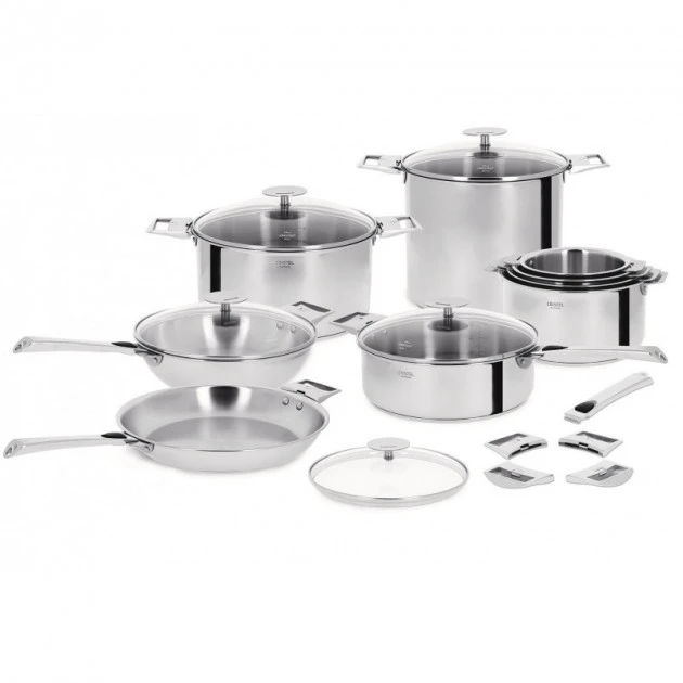 La Collection Casteline : Le meilleur de Cristel est rassemblé dans cette collection. Les ustensiles Casteline (Multiply) sont ultra performants et sont dotés d’un fond thermodiffuseur et accumulateur de 5 épaisseurs. Ainsi la répartition de la chaleur se fait uniformément sur la totalité du produit et pas seulement au fond de l’ustensile. Les produits de la collection Casteline ont une finition brillante et sont garantis Origine France.