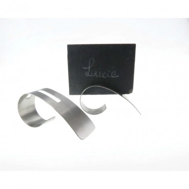 LeBrun propose ici un ensemble de 6 porte nom inox et ardoise en arabesques. Ce modèle tout en courbe et en Ă©lĂ©gance est l’article de prĂ©sentation qui finalisera Ă la perfection vos tables de rĂ©ception.