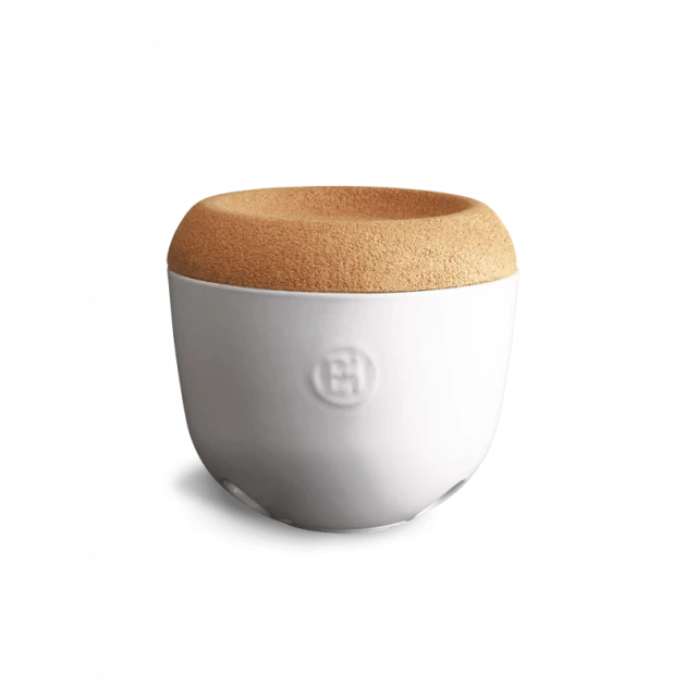 Fabriqué dans les ateliers Emile Henry situés en Bourgogne, ce pot à ail et échalotes se compose de deux matières naturelles : la céramique et le liège.
