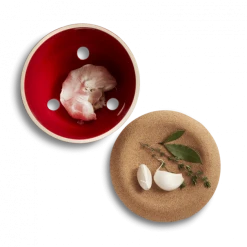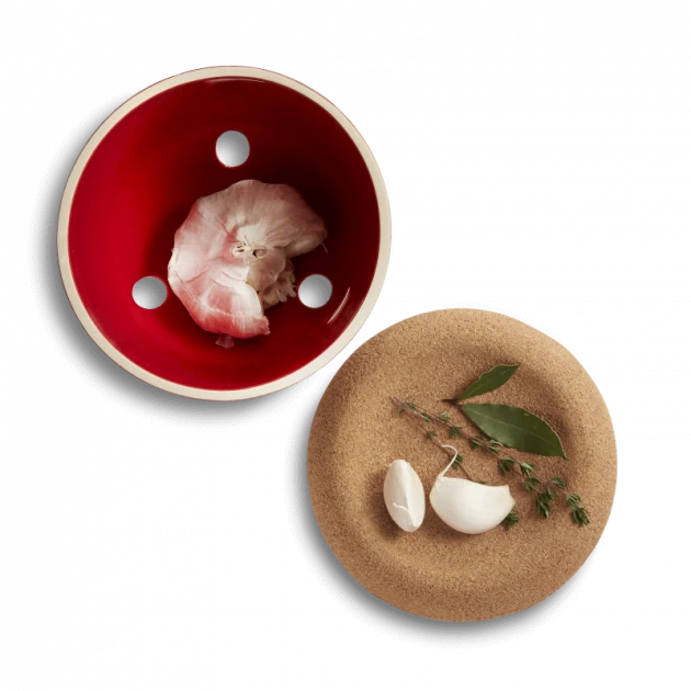 Le mariage des couleurs, entre le liège d’une teinte naturelle et la céramique émaillée, saura vous séduire. Baptisé Grand Cru, en hommage à la région où sont fabriquées les céramiques Emile Henry, c’est un rouge vibrant et aux reflets lumineux qui pare ce pot à ail en céramique.