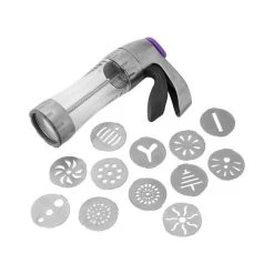 La Presse à Biscuits Wilton offre un gain de temps considérable puisqu’il n’y a plus besoin d’abaisser la pâte, puis de la pétrir à nouveau avec les chutes restantes jusqu’à épuisement de la pâte. Pour utiliser la presse à biscuits Wilton, préparez une pâte à spritz, puis insérez-la dans le tube. Disposez le disque en métal voulu puis exercez une légère pression sur le pistolet, puis répétez l’opération.