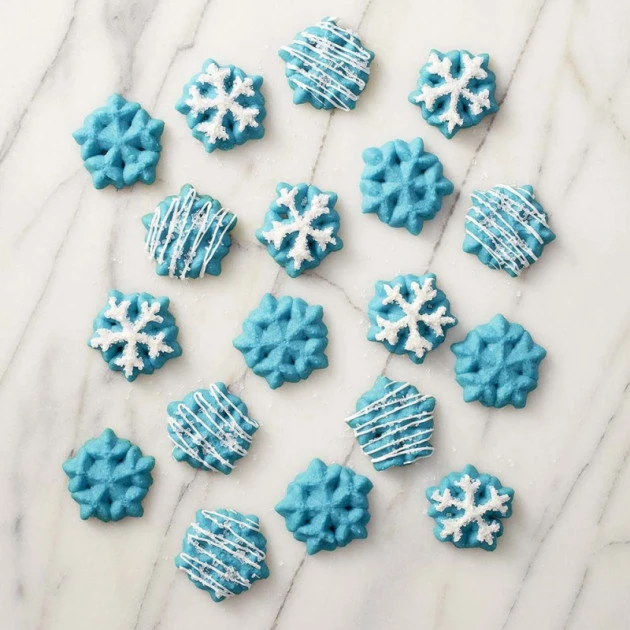 Pour décorer les biscuits confectionnées à l’aide de la Presse à Biscuits Wilton, attendez qu’ils soient complètement refroidis avant de les décorer avec du colorant en gel ou du chocolat fondu.