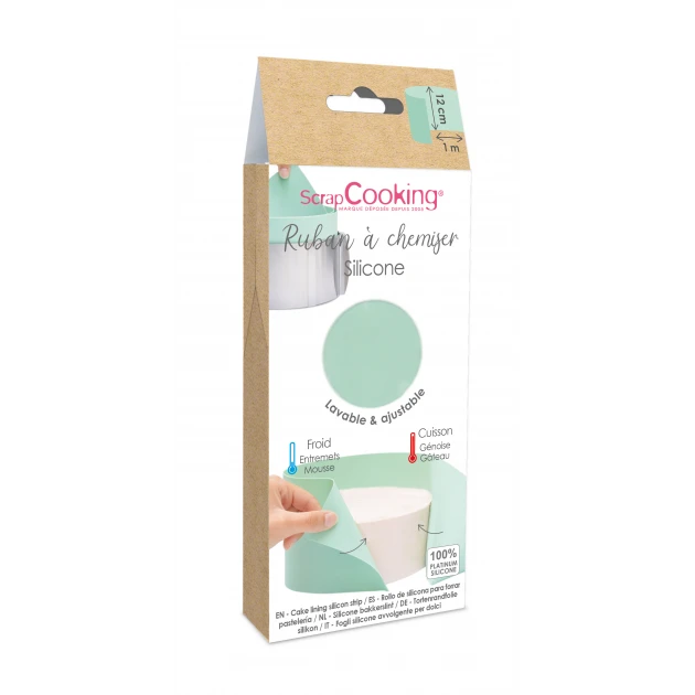 Toujours en quĂŞte d’innovation pour faciliter au mieux la vie des pâtissiers amateurs, Scrapcooking propose dĂ©sormais le Ruban Ă Chemiser en Silicone 1 m x H 12 cm Scrapcooking.Â