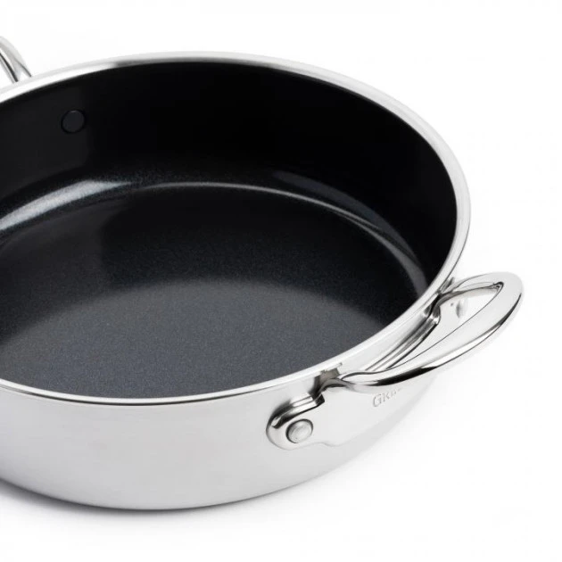 Avec cette sauteuse en inox GreenPan, vous pourrez cuisiner vos plats favoris en gardant toujours un Ćil sur la cuisson. A mi-chemin entre la casserole et la poĂȘle, cette sauteuse antiadhĂ©sive est vendue avec son couvercle en verre ; idĂ©al pour surveiller les prĂ©parations sans avoir Ă laisser sâĂ©vaporer les vapeurs de cuisson.
