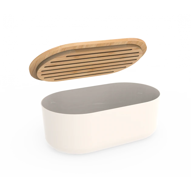 - Une boîte pain en métal crème, associée à un couvercle en bambou naturel. À déposer sur votre plan de travail ou directement sur votre table, la boîte conservation sera parfaite pour le pain, la baguette, les muffins, les biscottes ou la brioche. Facile à nettoyer d’un coup d’éponge, la boîte conservation pain préservera votre pain en l’empêchant de s’abîmer trop vite au contact de l’humidité.