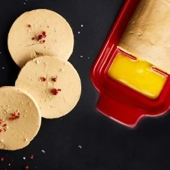 La couleur rouge « grand cru » de la terrine conviendra parfaitement à votre table de fête.