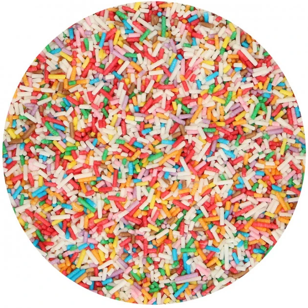 Ces petits Vermicelles colorés ajouteront du sucre ainsi que du croquant à vos pùtisseries. Les Vermicelles de sucre Multicolores seront parfaits pour la touche finale de vos donuts ou encore de vos cupcakes.